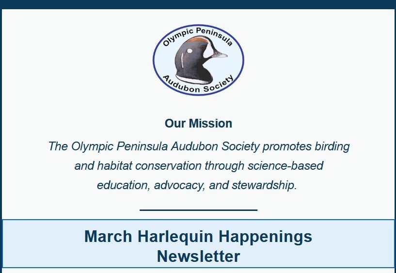 The Olympic Peninsula Audubon Society promotes birding and habitat conservation through science-based education, advocacy, and stewardship.