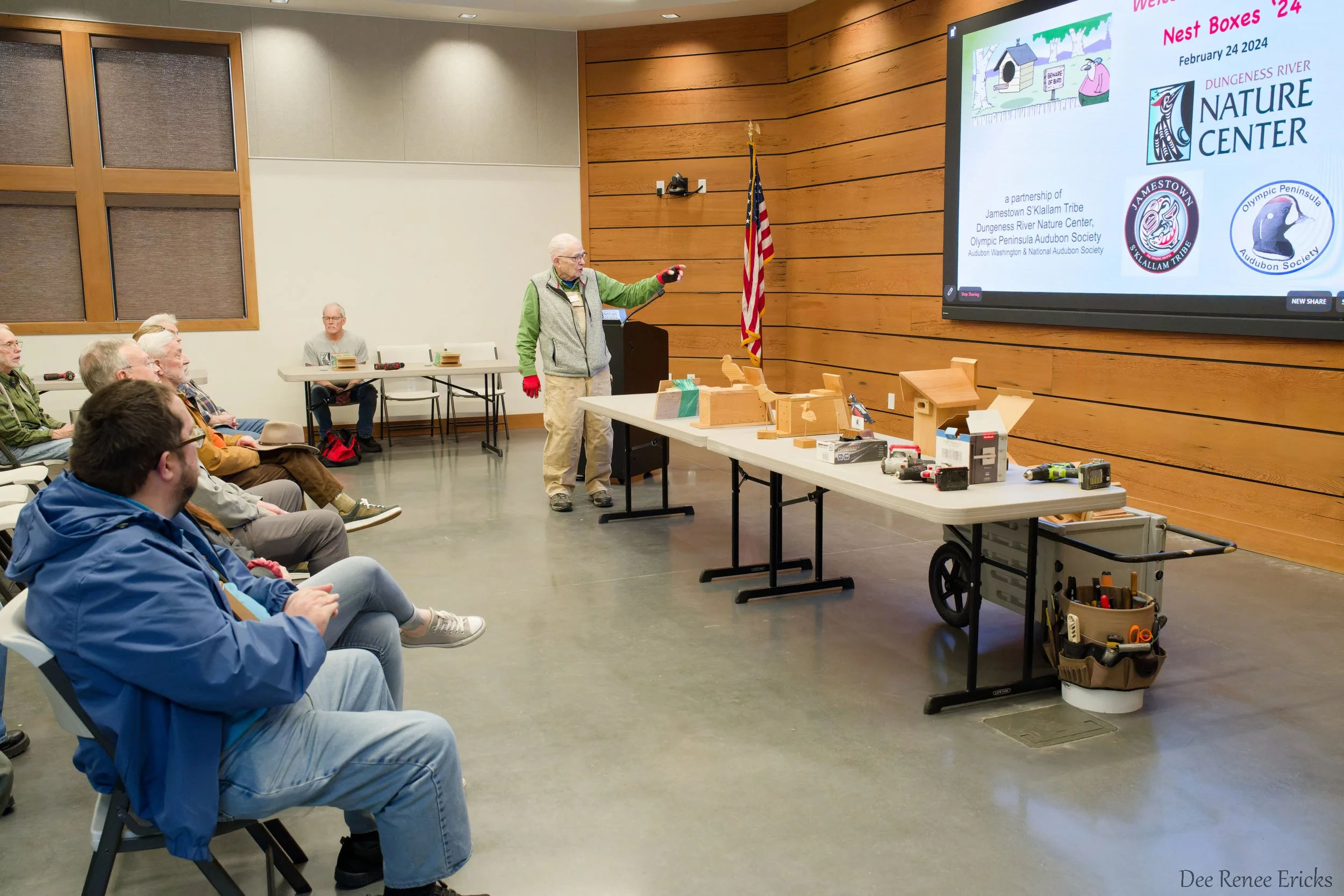 OPAS President Ken Wiersema gave a short program detailing the qualities that make a nest box a safe and ideal location for parent birds to raise their nestlings. Photo by Dee Renee Ericks