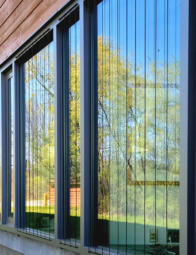 External insect window screens reduce bird collisions by minimizing window reflections and alerting birds that windows are barriers.